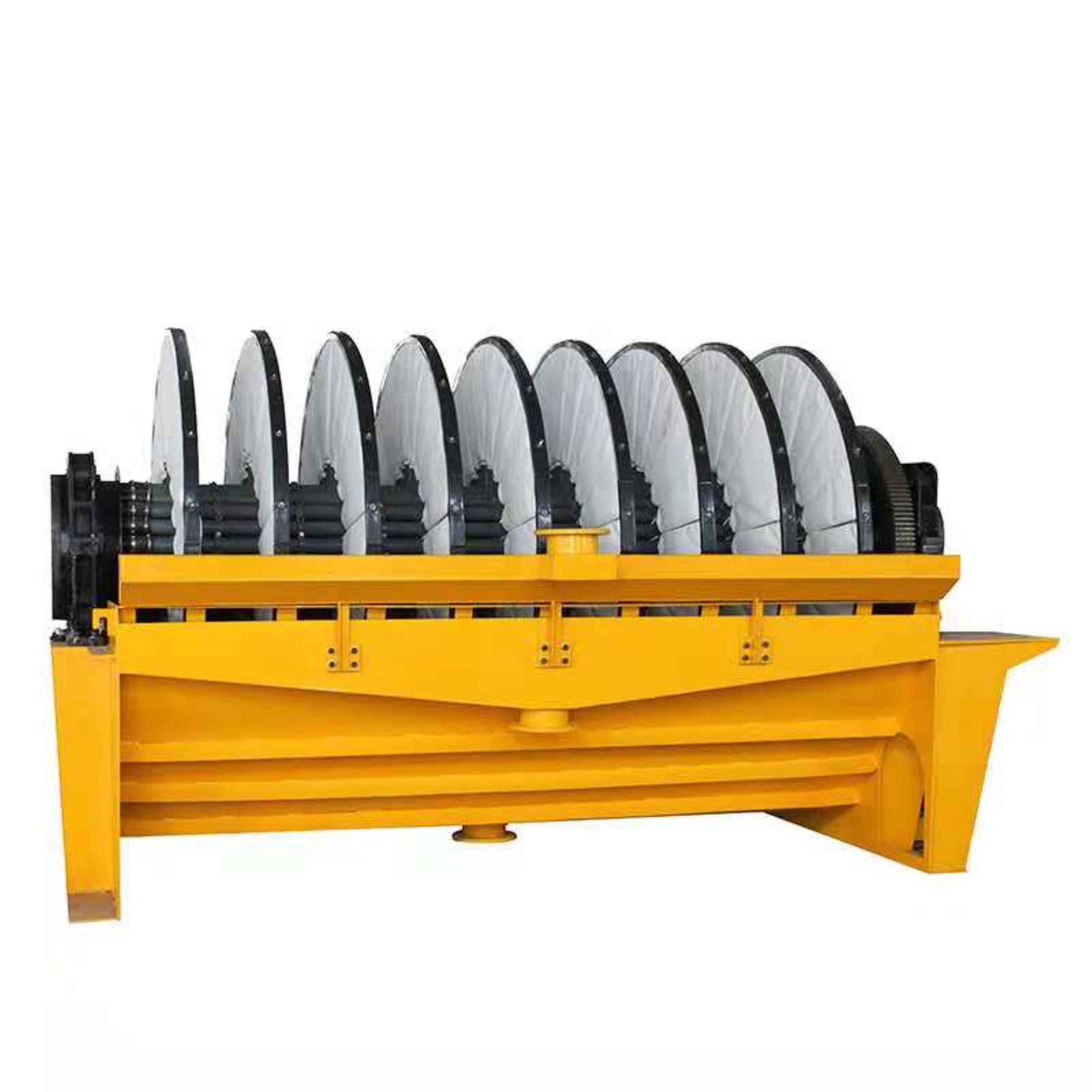 PG系列盤式真空過濾機 (1)扇形濾板脫水孔分布均勻,孔率合理,筋條尺寸大,由高強度工程塑料制成,壽命提高了2-3倍。 (2)濾液管過濾數(shù)面大,分配頭腹腔容積大,提高了抽氣率和濾液排放效果。 (3)耐磨錦綸、單或復絲濾布使脫餅率高且不易堵塞,使用壽命長。 (4)多點干油泵集中多點自動潤滑。 (5)濾布自動清洗裝置,保持了其良好的脫水效果。 (6)臥式強制高速攪拌、軸端采用橡膠及石墨盤根和水壓差三重密封不漏漿。 (7)主傳動無級變速,依物料的濃度及流量調(diào)節(jié)(交流調(diào)速電機或變頻器),以求達到理想的工作效果 。 (8)每盤由20片扇形板組成,加強了過濾過程控制,成餅厚度均勻。 (9)磨擦片采用特制耐磨硼鑄鐵,剛?cè)嵯酀芊饧?,使用壽命達到十年以上。 (10)濾液管為高強度耐磨陶瓷復合鋼管,提高壽命10倍以上。 (11)濾液管與濾扇接口去掉下法蘭,采取模具定位直接焊接,減少了90%可能的漏氣點。